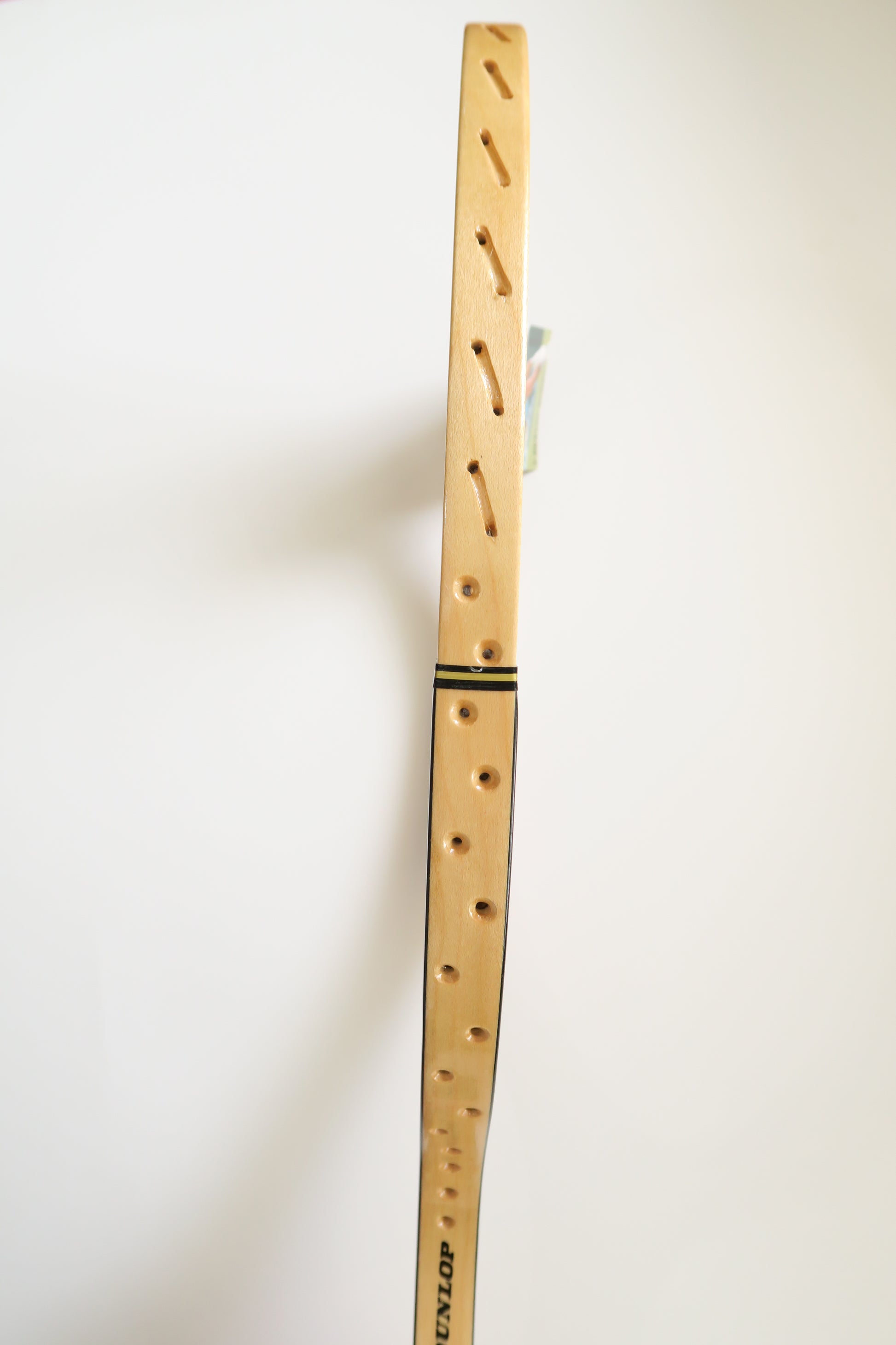 This presents a rare opportunity to acquire an unstrung, never-been-used Dunlop Macply McEnroe Wooden Racquet, perfect for avid collectors, tennis aficionados, or anyone seeking to own a piece of tennis history